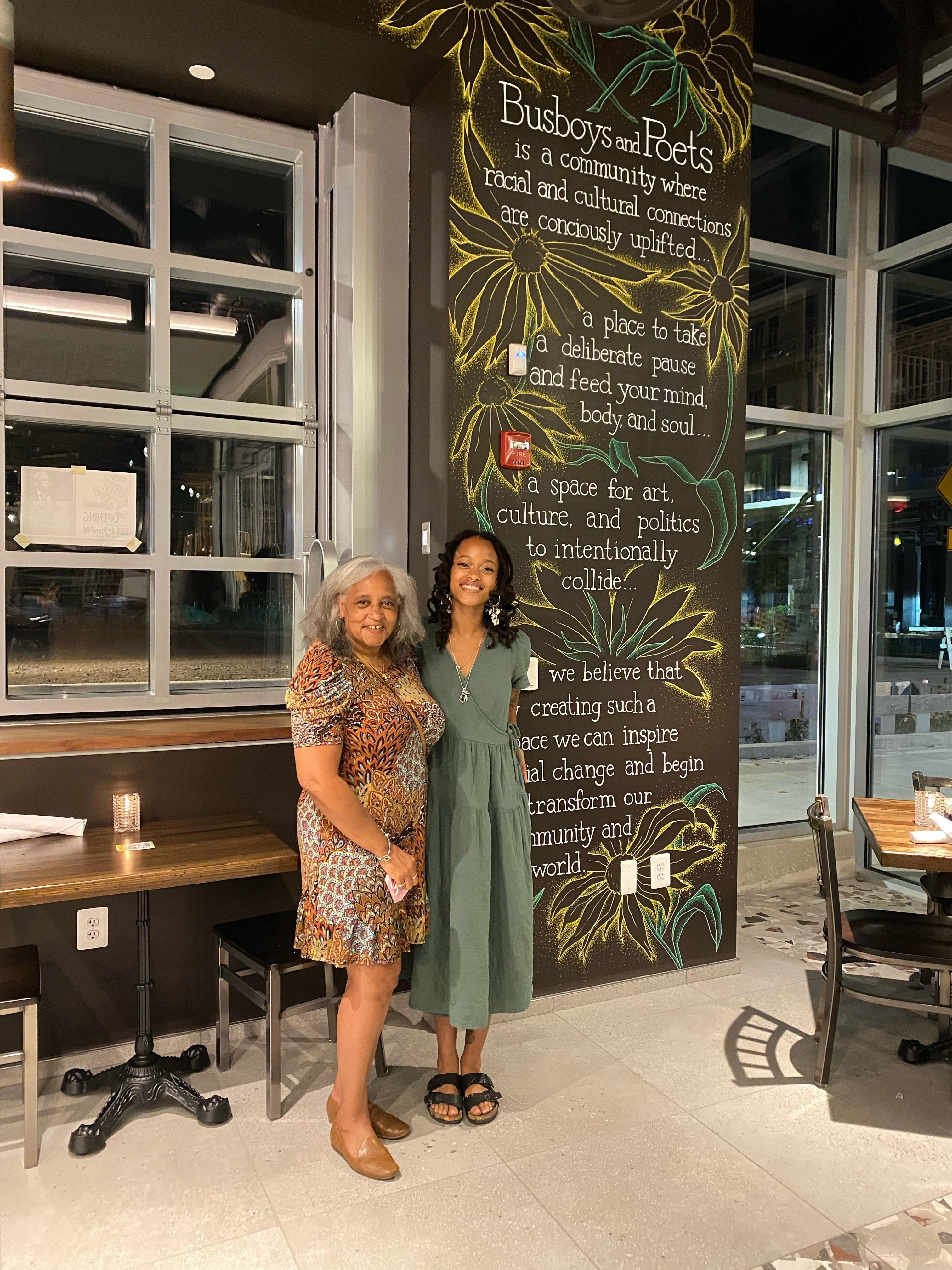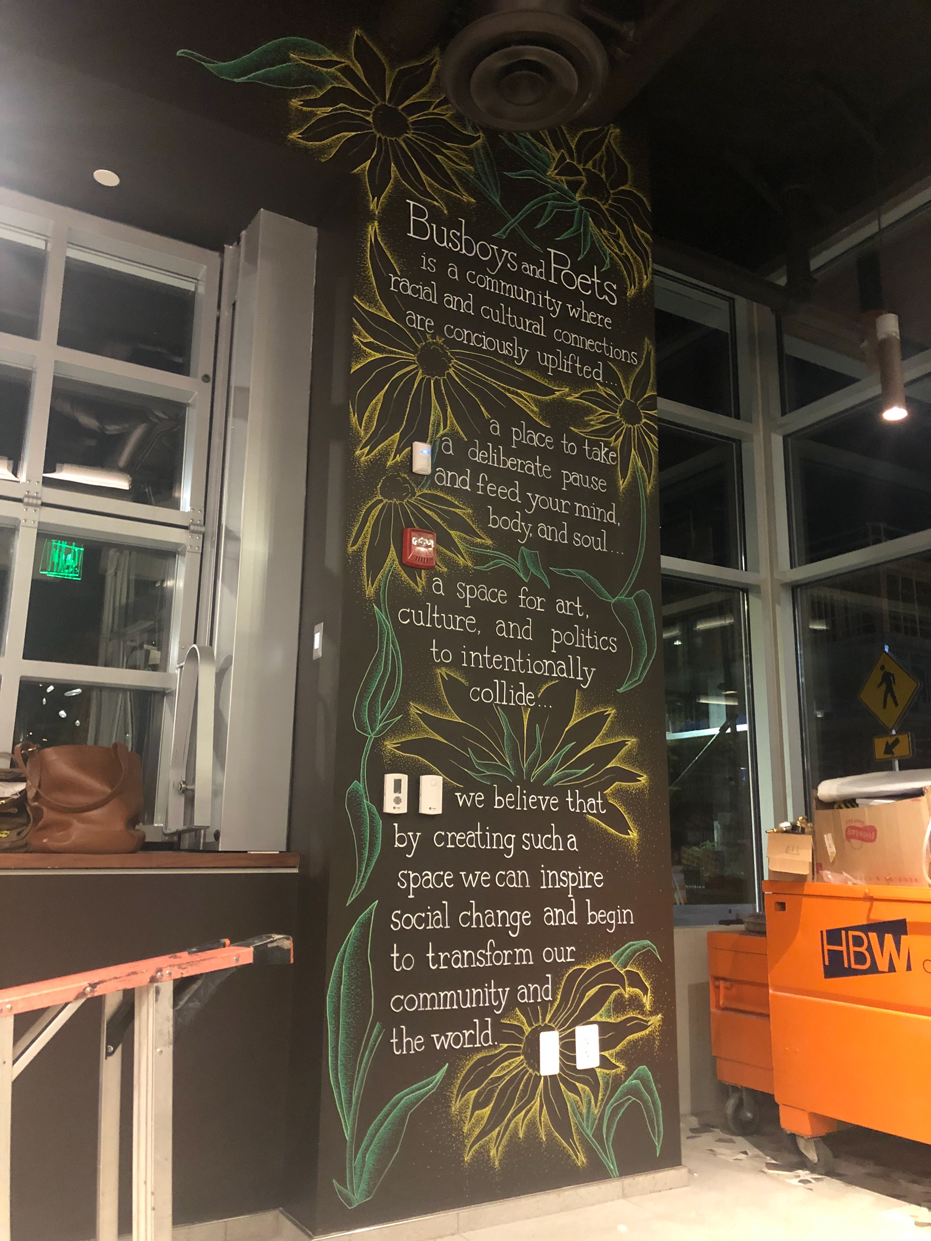 I was commissioned by Busboys and Poets to complete a mural depicting the company's tribal statement. Busboys and Poets is a collection of restaurants that prides itself on providing ‘conscious cuisine’ to its customers all over the DMV area.